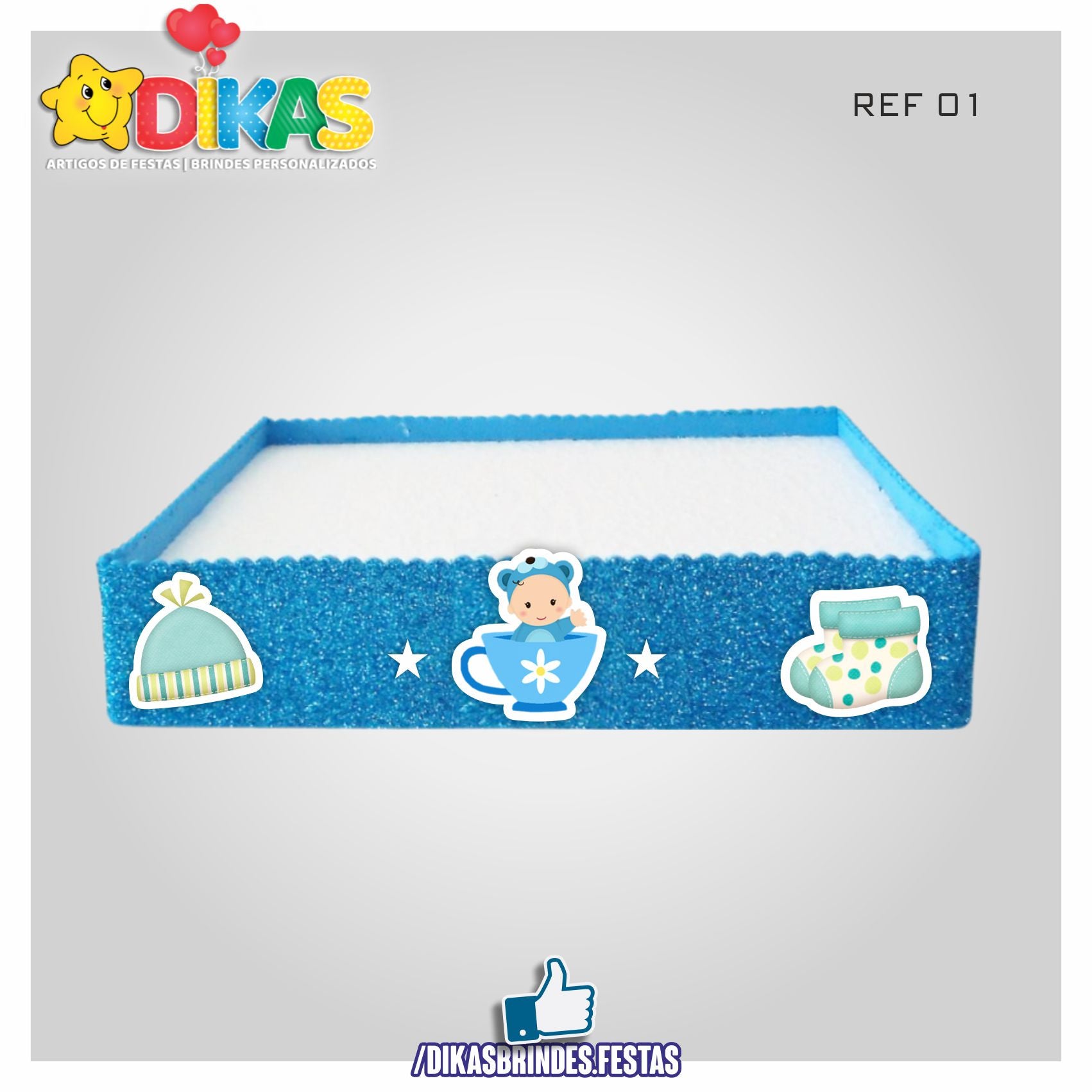 Bandeja Artesanal em esferovite, decorada com E.V.A e apliques em couché 250g.