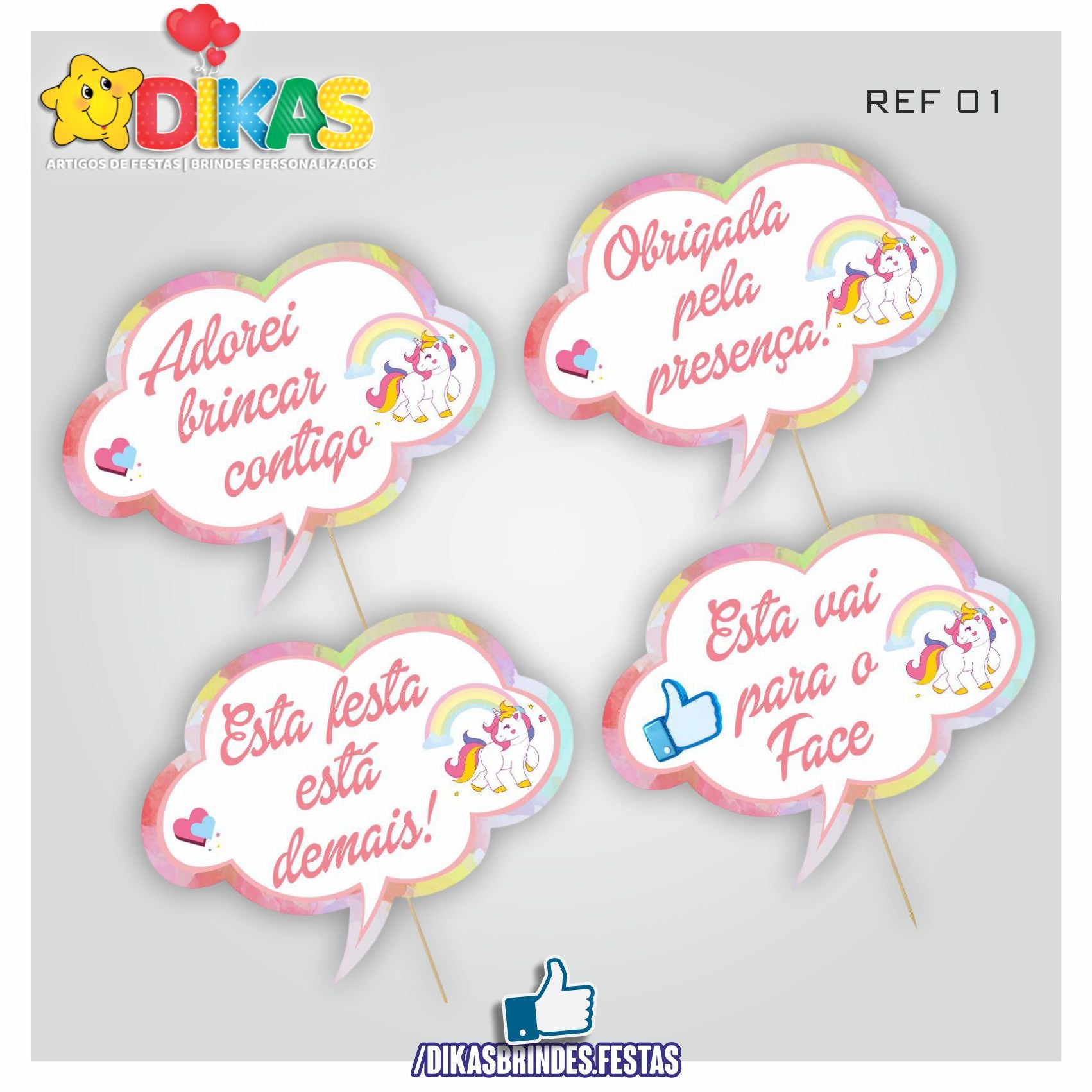 PLAQUINHAS DIVERTIDAS P/ FOTOS - UNICÓRNIO